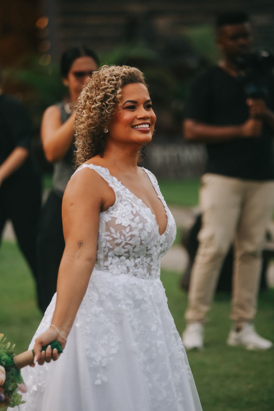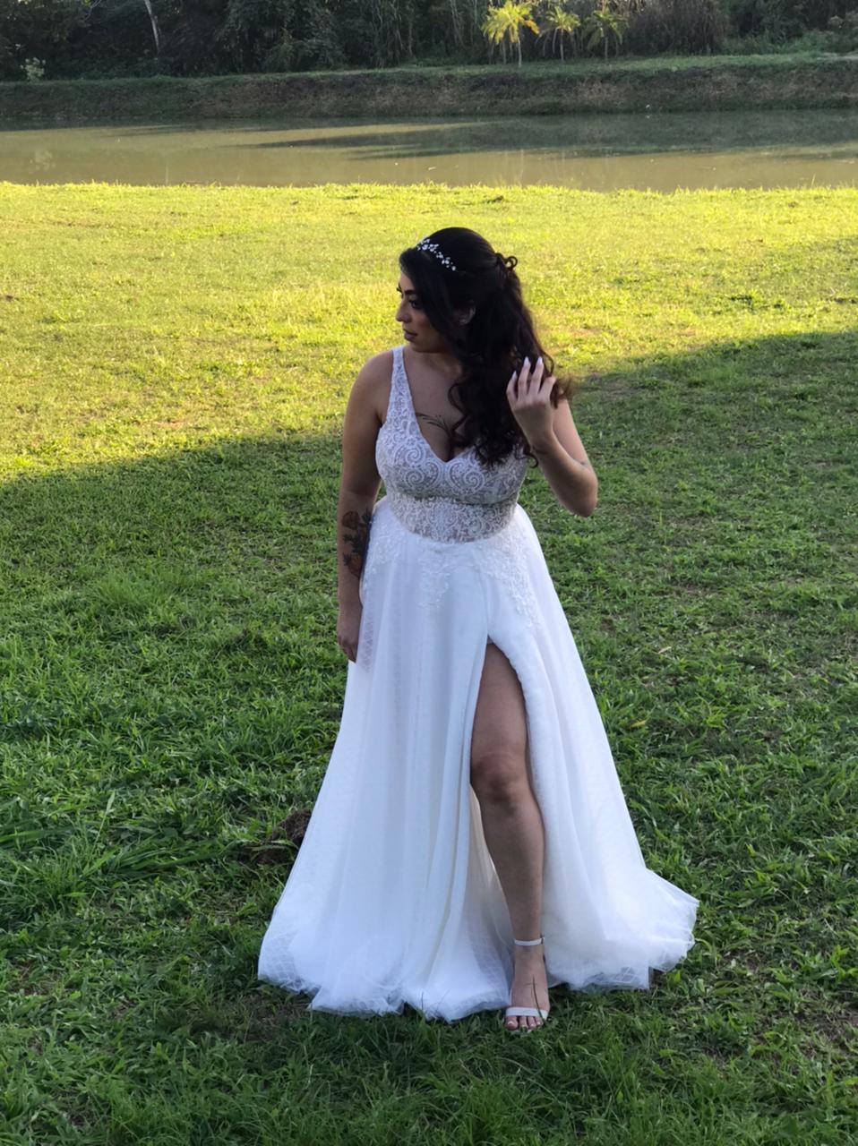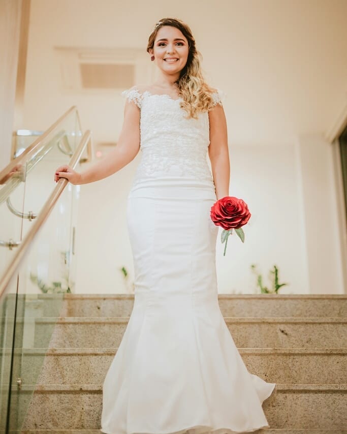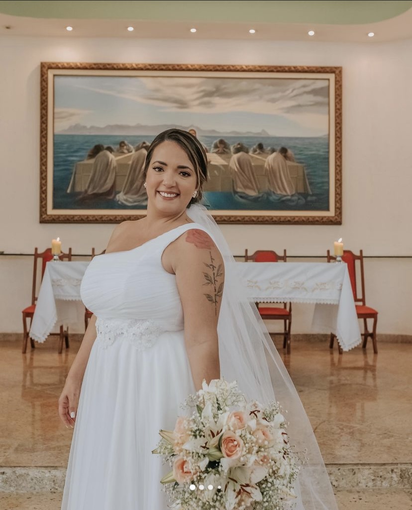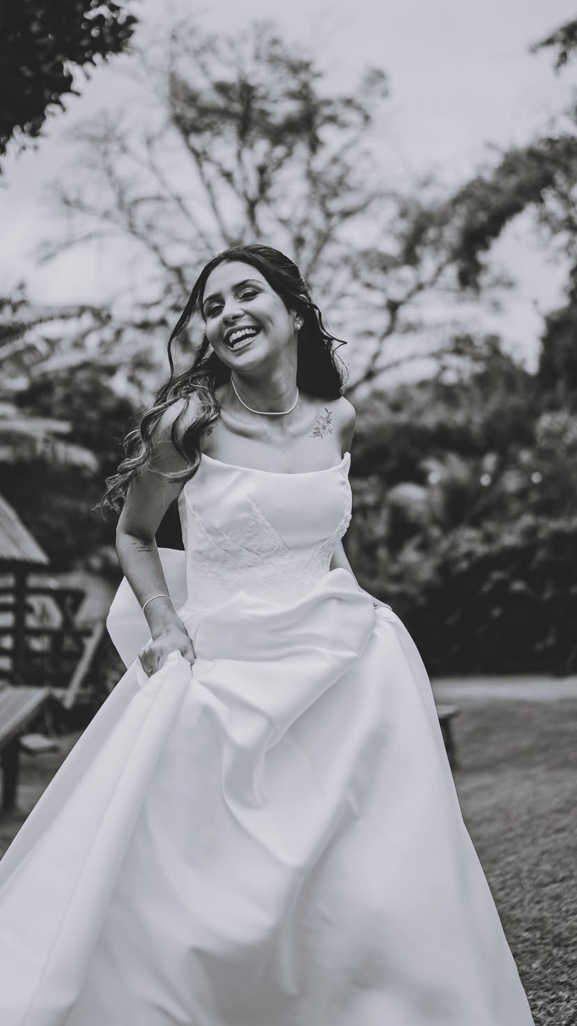 "A Ray tem mãos de fada! Eu tinha muito medo de o vestido não ficar confortável, mas ela cuidou de cada detalhe com uma delicadeza surreal. O ajuste ficou impecável, parecia uma segunda pele. Me senti a noiva mais linda do mundo!"