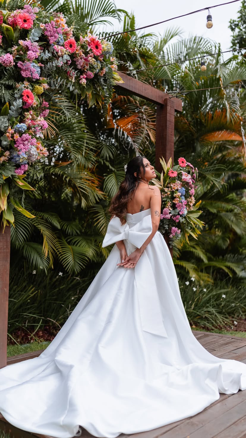 "O processo de criação com a Ray foi a parte mais tranquila do meu casamento. Ela entende exatamente o que a gente sonha e coloca carinho em cada costura. Além de uma profissional incrível, o cuidado dela com o catálogo é de emocionar."